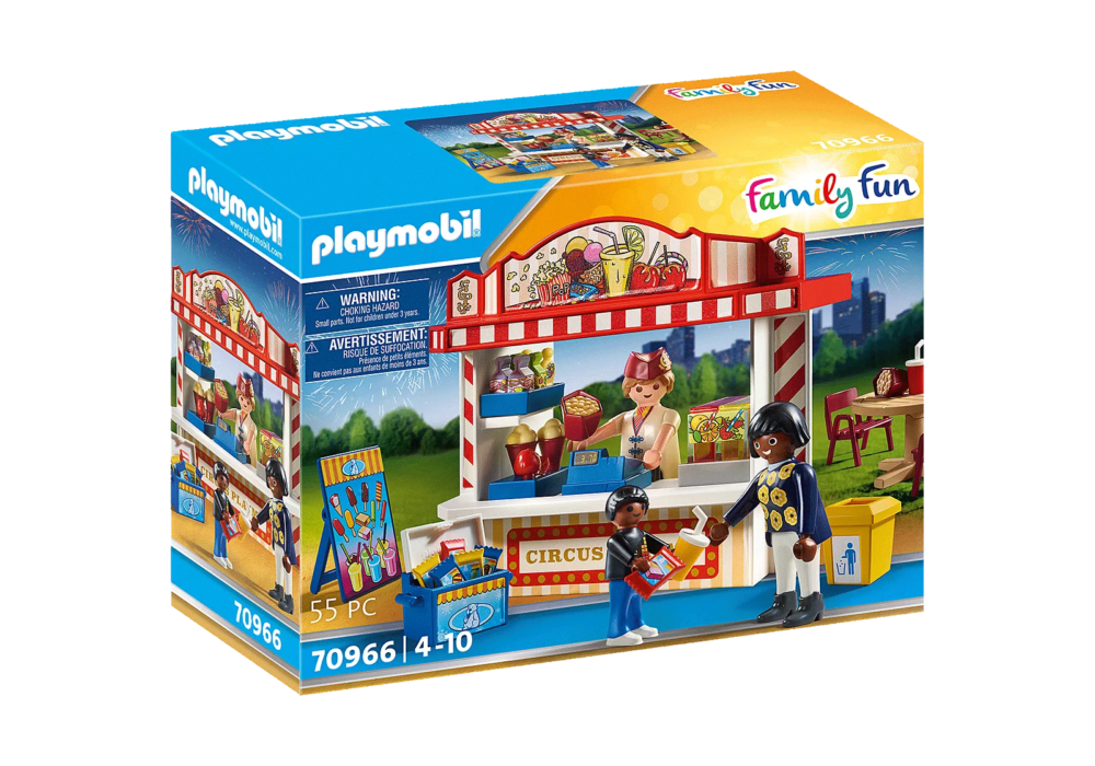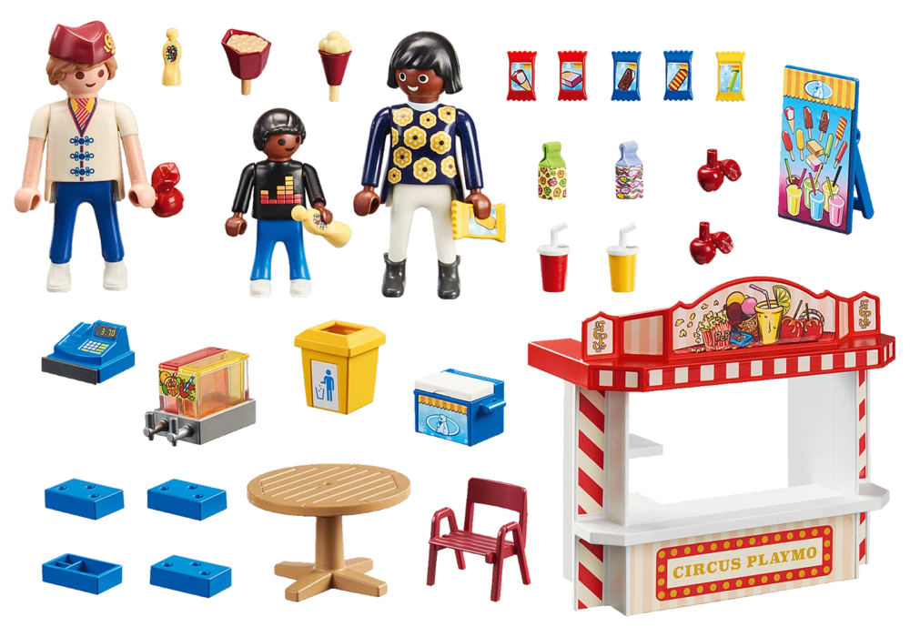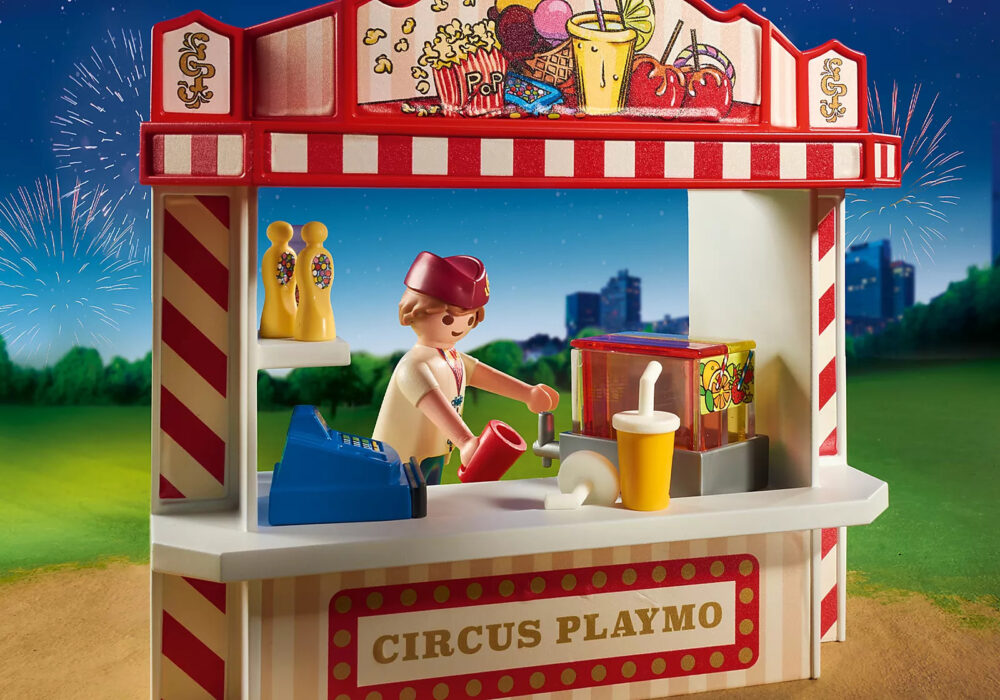 แม่และลูกชายตั้งตารอที่จะได้เยี่ยมชม Playmo Circus มาหลายวันแล้ว ในที่สุดเวลาก็มาถึง แต่ก่อนที่พวกเขาจะเข้าไปในเต็นท์ละครสัตว์สีสันสดใส ทั้งสองก็จะได้รับเครื่องดื่มอร่อยๆ ที่แผงแสดงละครสัตว์ ท้ายที่สุด คุณต้องการอาหารดีๆ สำหรับคลายเครียดเมื่อคุณเห็นศิลปินแสดงกลอันน่าตื่นเต้นของพวกเขา ไม่ว่าจะเป็นป๊อปคอร์น ไอศครีม หรือเครื่องดื่มเย็นๆ โรงละครสัตว์มีทุกอย่างที่คุณปรารถนา เด็กน้อยเลือกไอศกรีมแล้วออกไปที่เต็นท์ การแสดงใหญ่กำลังจะเริ่มขึ้น!