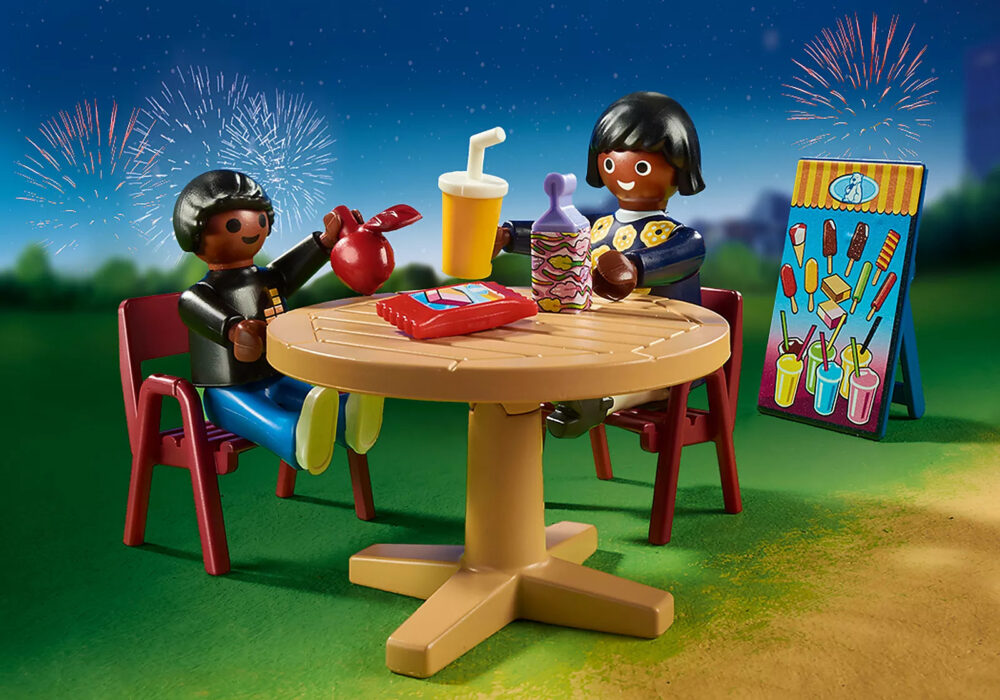 ในชุดของเล่นประกอบด้วยผู้หญิง PLAYMOBIL สองคนและหุ่นเด็ก 1 คน ชั้นวางขาย โต๊ะพร้อมเก้าอี้สองตัว ตู้แช่แข็ง ของชำต่างๆ และอุปกรณ์เสริมอื่นๆ เด็กหญิงและเด็กชายในจินตนาการจะได้สัมผัสกับเรื่องราวละครสัตว์ที่น่าตื่นเต้นขณะสนุกสนานในห้องเด็ก