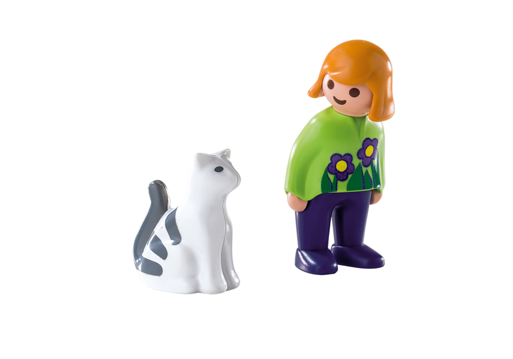 กอดสัตว์เลี้ยงที่คุณชื่นชอบกับ ผู้หญิง และแมว ด้วยการออกแบบที่สดใสและมีสีสันและชิ้นส่วนโค้งมนขนาดใหญ่ชุด PLAYMOBIL 1.2.3 นี้เหมาะสำหรับเด็กวัยหัดเดิน
