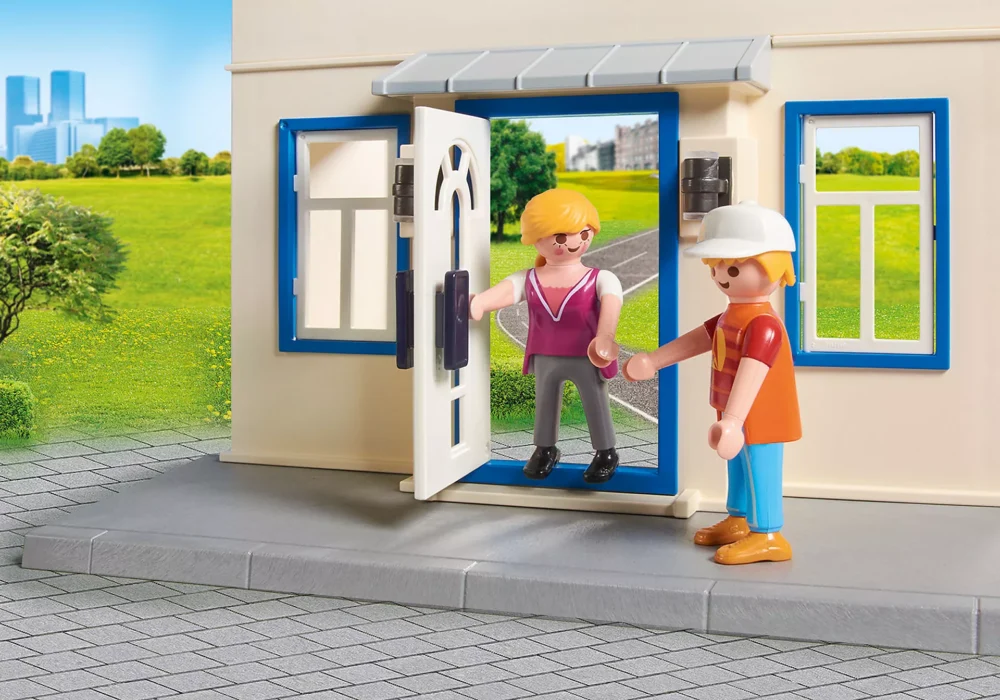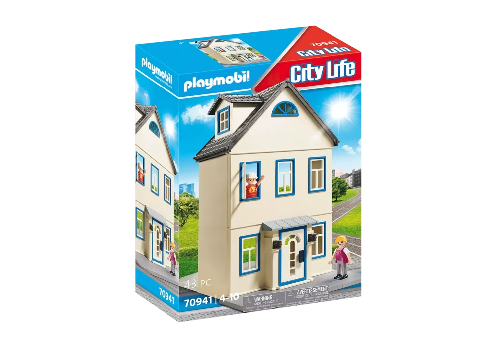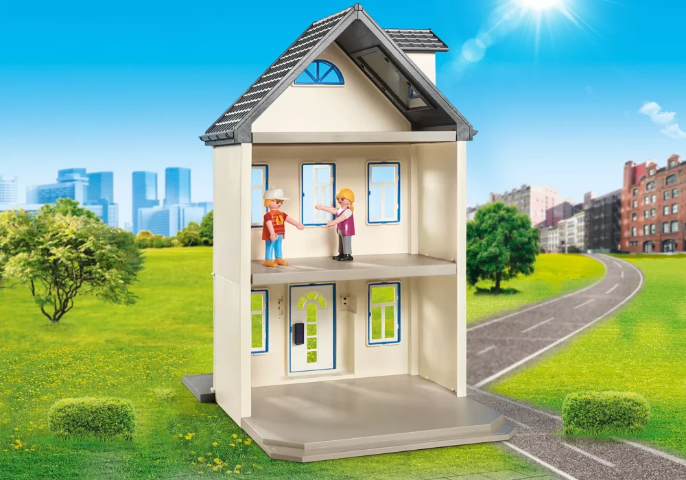 ทาวน์เฮาส์ PLAYMOBIL 2 ชั้นสไตล์โมเดิร์นพร้อมฟิกเกอร์ PLAYMOBIL 2 ตัวสำหรับตกแต่งและตกแต่ง
