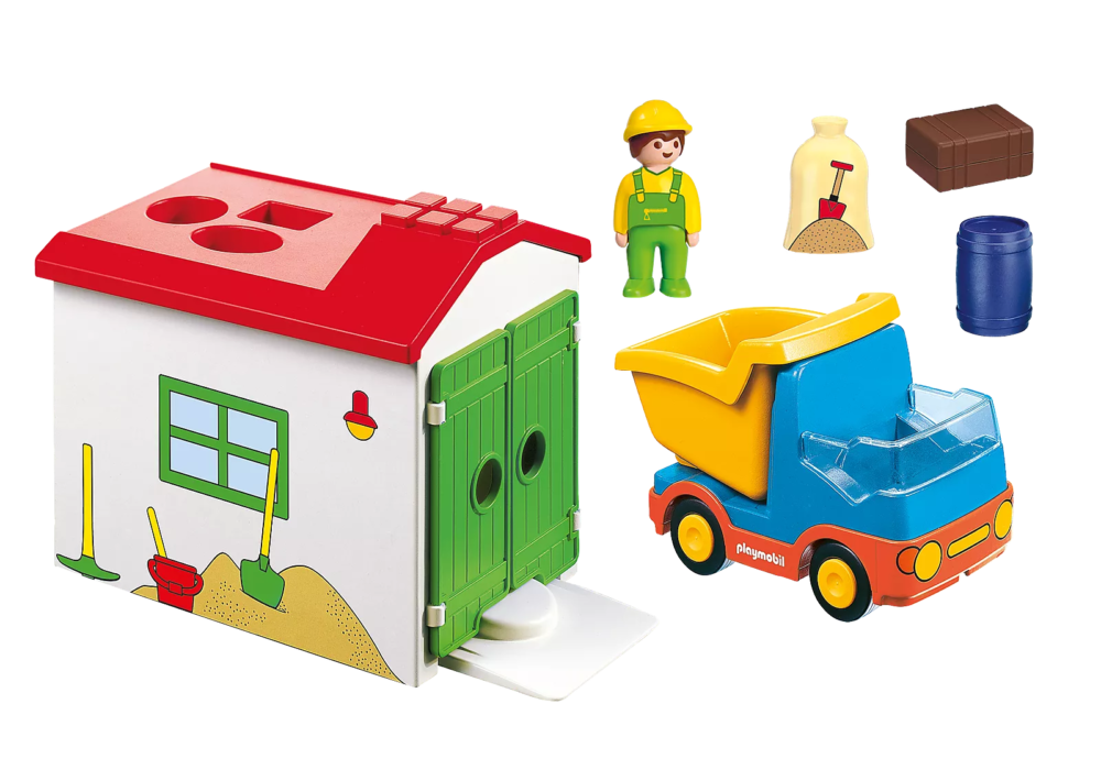 คนงานก่อสร้างนำรถบรรทุกขนาดใหญ่มาที่คลังสินค้า ขับถอยหลังอย่างระมัดระวังไปที่ทางลาด เปิดพื้นที่โหลดและถังขยะจะเลื่อนเข้าไปในอาคาร นั่นเป็นเรื่องง่าย งานนี้สนุกแน่! ชุดของเล่นประกอบด้วยอาคารเก็บของ รถบรรทุกพร้อมพื้นที่ขนถ่ายสินค้า สินค้าต่างๆ: ถัง กระสอบ บรรจุภัณฑ์ และอุปกรณ์อื่นๆ ฟังก์ชันที่ยอดเยี่ยม: ด้วยฟังก์ชันการจัดเรียงบนหลังคา เด็กวัยหัดเดินเรียนรู้ที่จะจดจำรูปร่างและกำหนดวัตถุได้อย่างถูกต้อง เข้าใจโลกอย่างสนุกสนานด้วย PLAYMOBIL-1.2.3 ชุดของเล่นนี้เหมาะสำหรับเด็กอายุ 18 เดือนขึ้นไป ด้วยรูปทรงกลม สีสันสดใส และชิ้นส่วนเล็กๆ ที่กลืนไม่ได้ ชุดทั้งหมดจึงปลอดภัย มีคุณภาพสูง และส่งเสริมความคิดสร้างสรรค์และทักษะยนต์ที่ดี