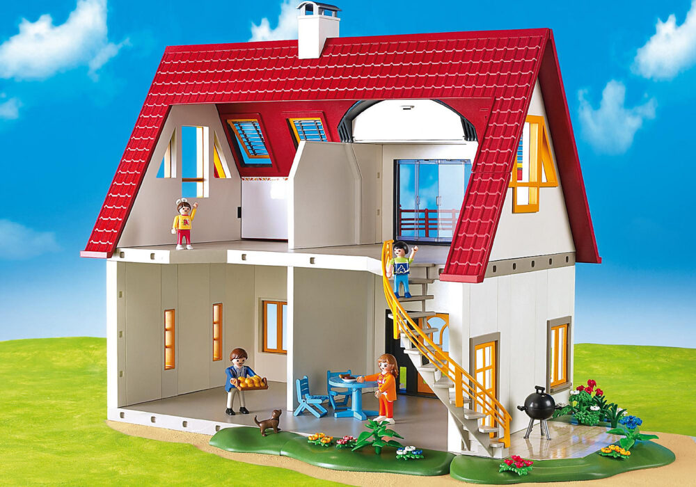 อยู่บ้านก็ดีที่สุด! ทั้งครอบครัวจะรู้สึกเหมือนอยู่บ้านในบ้าน PLAYMOBIL ที่ทันสมัย ห้องพักขนาดใหญ่ที่เป็นมิตรบนสองชั้นมีพื้นที่มากมายสำหรับชีวิตครอบครัวที่ปั่นป่วน ที่ระเบียงดาดฟ้าเหมาะเป็นอย่างยิ่งที่จะพักผ่อนใต้หลังคากันสาดและข้างนอกพ่อเพิ่งเริ่มย่าง ใครไม่อยากย้ายเข้ามาที่นี่? ชุดของเล่นประกอบด้วยบ้านที่ตกแต่งอย่างสวยงามด้วยกันสาดแบบดึงออกได้ กริ่งประตูสำหรับทำงานและระเบียง เช่นเดียวกับฟิกเกอร์ PLAYMOBIL สี่ตัว สุนัข โต๊ะ เก้าอี้ และอุปกรณ์อื่นๆ อีกมากมาย