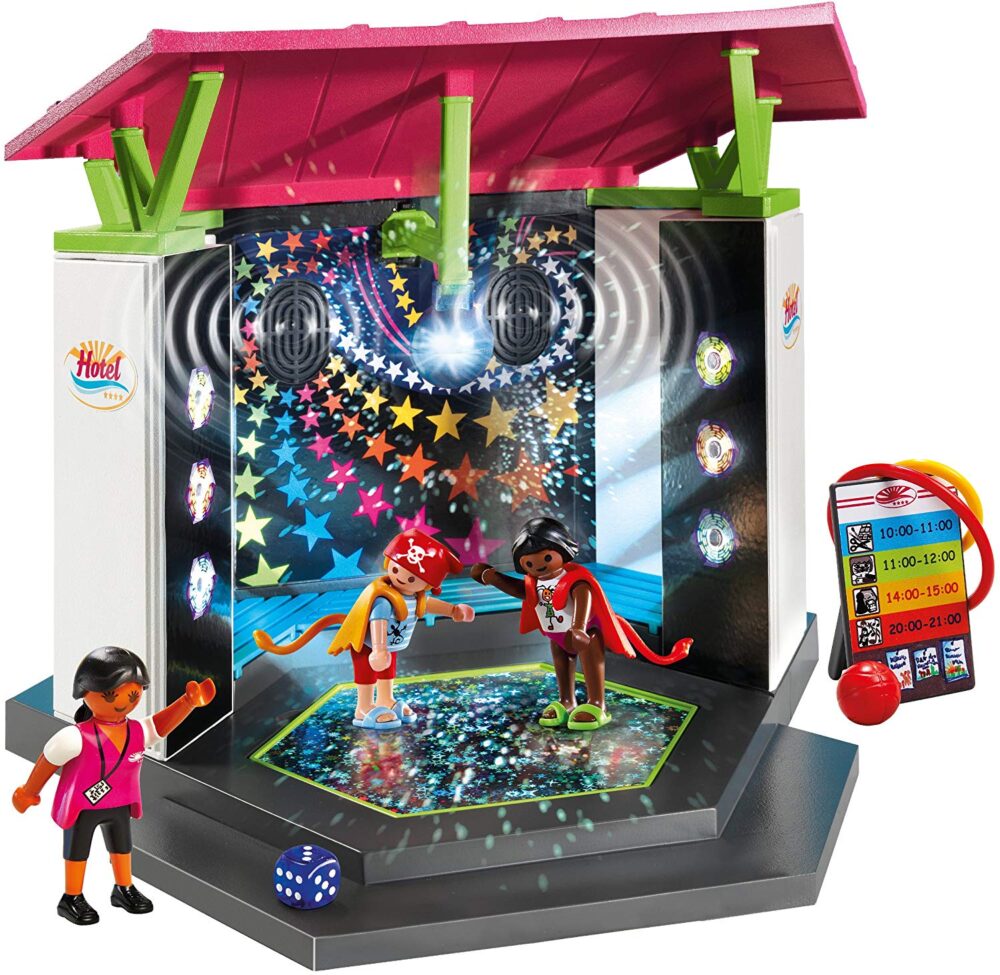 เต้นรำทั้งคืนในสโมสรเด็กด้วยดิสโก้ เลือกจากหนึ่งในสองเพลงเต้นรำหรือใช้สายเคเบิลที่ให้มาเพื่อเชื่อมต่อเครื่องเล่น MP3 ของคุณ ลำโพงในตัวและฟลอร์เต้นรำแบบหมุนช่วยให้ความสนุกดำเนินไปได้ เปิดลูกบอลดิสโก้ที่ใช้งานและไฟสีกระพริบเพื่อให้ได้เอฟเฟกต์คลับแบบเต็ม