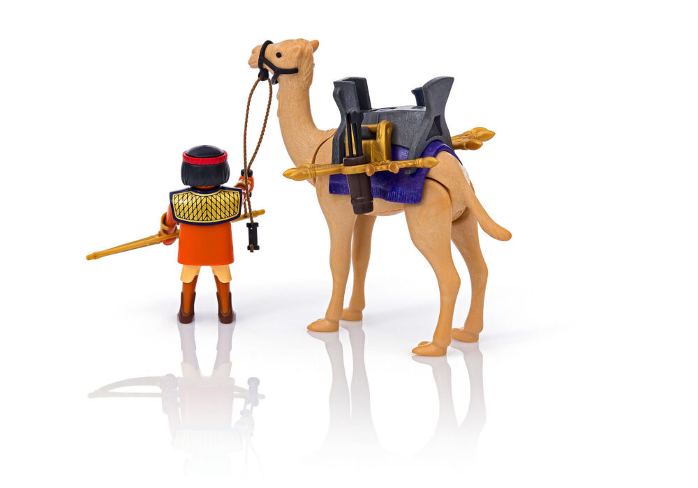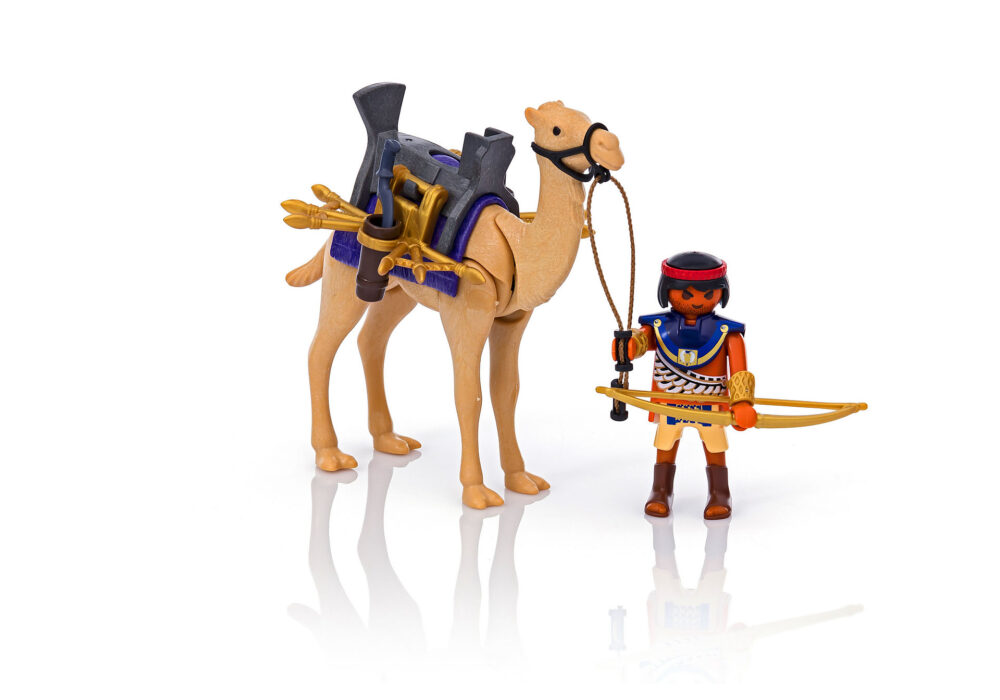 ในชุดประกอบด้วยฟิกเกอร์นักรบอียิปต์พร้อมอาวุธครบมือกับอูฐคู่ใจ