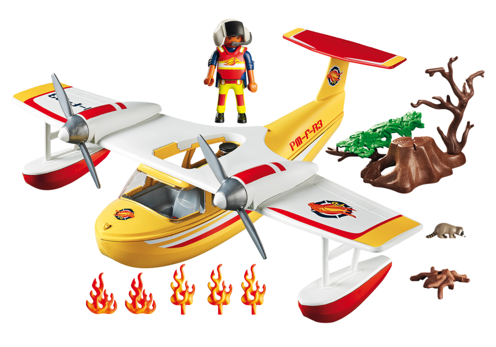 ทะยานเหนือยอดไม้และดับไฟป่าด้วย เพลย์โมบิล ไวล์ดไลฟ์ เครื่องบินดับเพลิงป่า ที่ดับเพลิง เครื่องบินลอยสามารถลอยอยู่บนน้ำได้และมีถังเก็บน้ำที่เติมได้เพื่อดับไฟได้จากด้านบนเพียงกดปั๊มที่ด้านหลังของเครื่องบินเพื่อปล่อยน้ำ เด็ก ๆ สามารถเล่นกับชุดนี้ด้วยตัวเองหรือใช้ร่วมกับชุด PLAYMOBIL อื่น ๆ เพื่อความสนุกที่เพิ่มมากยิ่งขึ้น