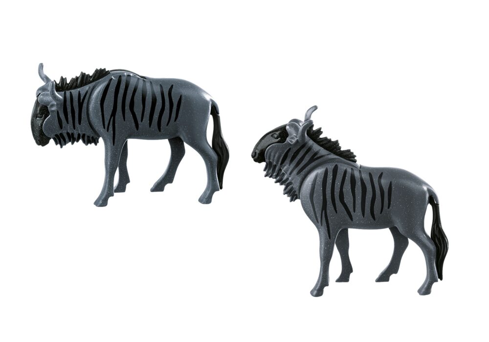 สังเกต วัวกระทิงป่าและลูก ที่แปลกใหม่ขณะที่พวกมันกินหญ้า เล่นกับเซตนี้หรือรวมเข้ากับเซ็ตต่าง ๆ ในธีมสัตว์ป่าแอฟริกา (6936-6945) เด็ก ๆ สามารถเล่นกับชุดนี้ด้วยตัวเองหรือใช้ร่วมกับชุด PLAYMOBIL อื่น ๆ เพื่อความสนุกมากขึ้น