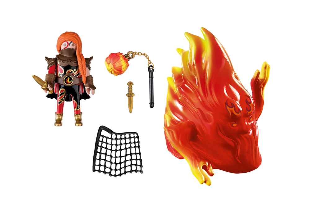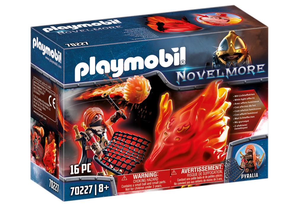 เพลย์โมบิล โนเวลมอร์ ปีศาจไฟ Pyralia ผู้ดูแลไฟที่คาดเดาไม่ได้อาศัยอยู่ลึกเข้าไปในภูเขาไฟ ขอแนะนำให้ระวัง Pyralia ที่ไม่แน่นอนเพราะด้วยพลังอันมหาศาลของมันสามารถควบคุมวิญญาณไฟและใช้พวกมันในการต่อสู้ได้ตลอดเวลา แม้ในระยะไกลเธอสามารถควบคุมปีศาจไฟเข้าไปแทรกแซงในการต่อสู้ได้ “วิญญาณไฟไหม้มีไฟกะพริบจำเป็นต้องใช้แบตเตอรี่ AAA 1 x 1.5 V