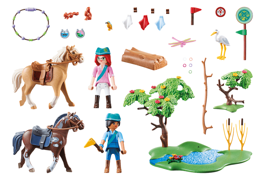 การแข่งขันข้างธารน้ำ: ทรงตัวบนท่อนซุงกระโดดข้ามสิ่งกีดขวางมอบธงและผ้าขนหนูให้ปลา กับพรูชิกาลินดาและดาฟนีกับลูกหินม้า พิเศษ: สร้อยข้อมือมิตรภาพสำหรับเด็กที่มีตราเกือกม้าให้สะสม