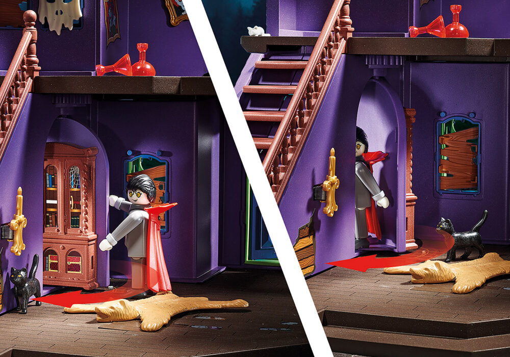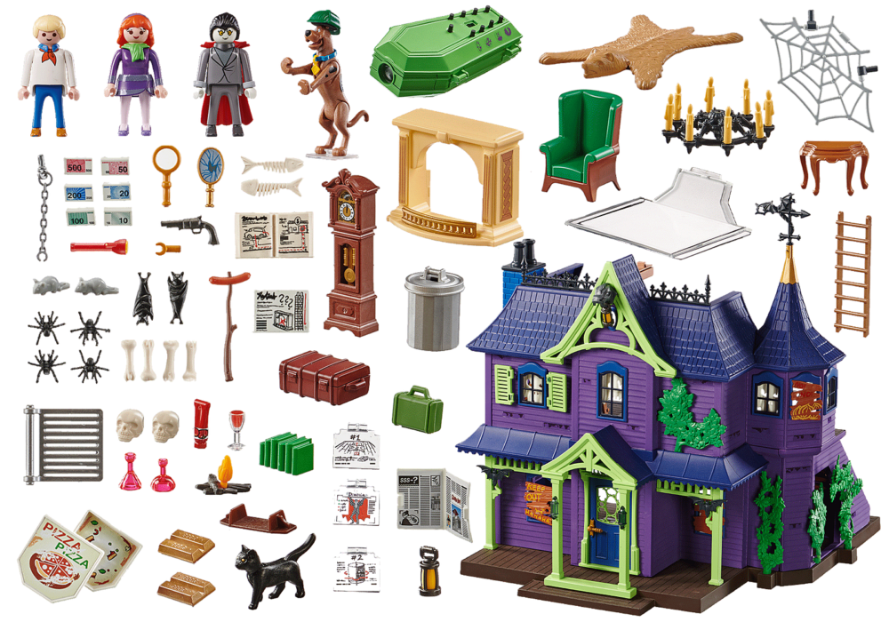 เพลย์โมบิล สคูบี้ดู! ผจญภัยในคฤหาสน์ลึกลับ สคูบี้-ดู, เฟรด & แดฟนี่ กำลังจะเปิดเผยความลับของบ้านผีสิง ความประหลาดใจที่น่าขนลุกแฝงตัวอยู่ในมุมมืดและด้านหลังทางเดินเอี๊ยดอ๊าดและไม่ควรมองข้ามสิ่งใด โปรดทราบ! ประตูกับดักโคมระย้าห้อยจุดซ่อนเร้นประตูที่ซ่อนอยู่และบันไดที่กลายเป็นสไลด์ทำให้เพื่อน ๆ อยู่เสมอ ด้วยความช่วยเหลือของแอพ PLAYMOBIL ผีและผีสามารถฉายเป็นโฮโลแกรมที่ชั้นล่างได้ โลงศพพิเศษสามารถใช้ส่องการ์ดผีที่ให้เบาะแสในการจับคนร้ายได้ อึ๊บ! นอกจากนี้โลงศพยังมาพร้อมกับเอฟเฟกต์เสียงที่น่าขนลุกและน่ากลัวซึ่งช่วยเพิ่มบรรยากาศที่น่าขนลุก แวมไพร์หน้าตาน่ากลัวจริงๆและมีสองหน้า โลงศพพร้อมโปรเจ็กเตอร์และเอฟเฟกต์เสียง, การ์ดผีสามใบและอุปกรณ์อื่น ๆ อีกมากมายสำหรับการผจญภัยที่น่าตื่นเต้น!
