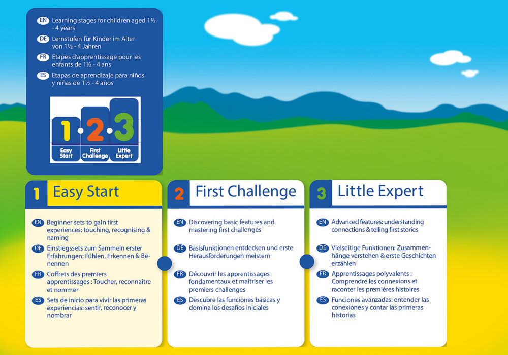 มีหลายสิ่งที่ต้องทำในสถานที่ก่อสร้าง คนงานก่อสร้างกำลังขนกระสอบทรายขนาดใหญ่ด้วยรถเข็น ด้วยการก้าวเล็ก ๆ สู่โลกใบใหญ่ของ PLAYMOBIL ระบบเกม PLAYMOBIL 1.2.3 แบ่งออกเป็นสามระดับการเรียนรู้ต่อเนื่อง: เริ่มต้นง่ายท้าทายแรกและผู้เชี่ยวชาญน้อย แต่ละระดับการเรียนรู้ส่งเสริมพัฒนาการของเด็กอย่างมีเป้าหมายและสนุกสนาน ธีมและฟังก์ชั่นของเกมที่หลากหลายช่วยส่งเสริมความคิดสร้างสรรค์ทักษะยนต์ที่ดีการพัฒนาภาษาความเข้าใจทางปัญญาและทักษะทางสังคม