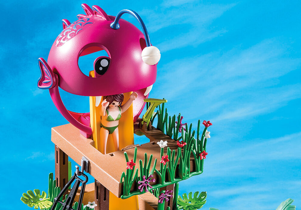 คุณชอบสวนน้ำรึป่าว? พบกับ PLAYMOBIL Aqua Park กัน สไลเดอร์ที่หลากหลายและกระดานกระโดดน้ำที่ยอดเยี่ยมให้ความสนุกในการเล่นน้ำได้ยอดเยี่ยม บันไดเชือกจะพาคุณขึ้นไปบนสไลเดอร์แล้วถไลลงไปในน้ำ ใครจะกล้ากระโดดลงจากสไลด์ที่สูงชันสุดขีด ผ่านประตูกับดักของปลาตัวใหญ่กัน?
