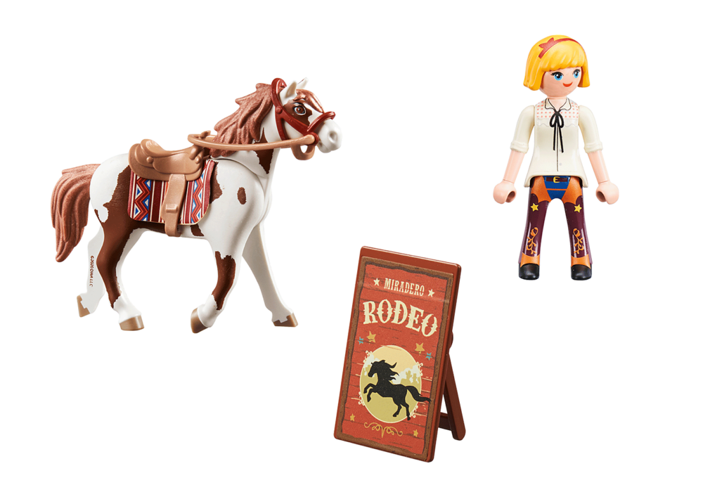 ชุดละครประกอบด้วย : ตัวละครอบิเกล DreamWorks Spirit พร้อมบูมเมอแรงม้าอานบังเหียนและป้ายโรดิโอ ตัวฟิกเกออร์สามารถขี่ม้าได้