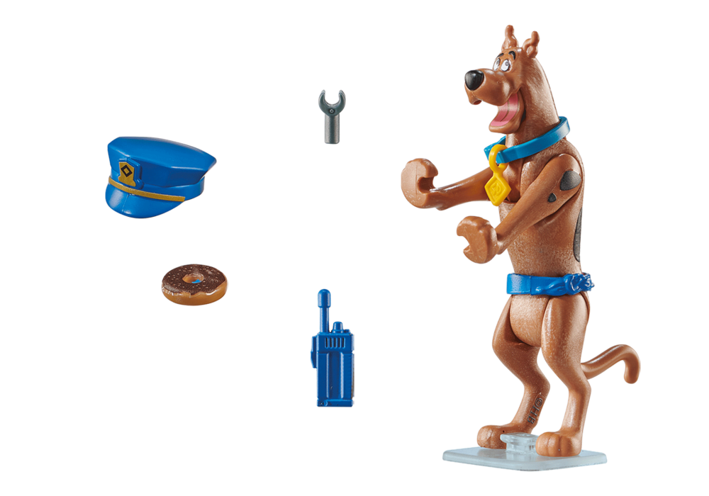 เหตุการณ์แปลก ๆ เกิดขึ้นในเมือง? ด้วย SCOOBY-DOO! หุ่นตำรวจรวบ! Scooby-Doo สวมหมวกตำรวจ และเขาพร้อมที่จะสำรวจสถานการณ์ด้วยเครื่องส่งรับวิทยุในอุ้งเท้า