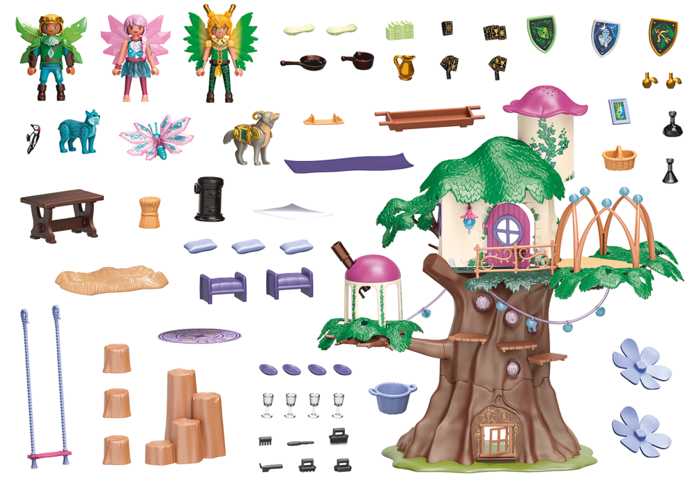 ต้นไม้ชุมชนลึกลับตั้งอยู่ลึกเข้าไปในป่านางฟ้าที่น่าหลงเสน่ห์ ที่แห่งนี้ไม่ได้เป็นเพียงบ้านของเหล่านางฟ้าเท่านั้น แต่ยังเป็นสถานที่พักผ่อนที่ปลอดภัยสำหรับสัตว์วิเศษและสัตว์วิญญาณที่เป็นมิตร นางฟ้าแต่ละสายพันธุ์จะแสดงด้วยสัญลักษณ์บนต้นไม้ชุมชน เหล่านางฟ้ามาพบกันในห้องนั่งเล่นแสนสบายเพื่อพูดคุยกันอย่างมีความสุข พวกเขาใช้กล้องโทรทรรศน์ของหอดูดาวเพื่อสังเกตดวงดาว บนชานชาลาไม้ด้านข้าง ศาลาลวดลายที่มีโคมไฟเรืองแสง หมอนและผ้าห่มแสนอบอุ่นเชิญชวนให้คุณนอนฝัน ในหอคอยของต้นไม้ส่วนกลางมีเครื่องฉายดาวซึ่งสามารถฉายไปบนท้องฟ้าให้เต็มไปด้วยดวงดาวบนเพดานได้ สัตว์วิญญาณที่จงรักภักดีมีที่พักพิงอันอบอุ่นสบายใต้รากไม้ มีพื้นที่เพียงพอ เพื่อเล่นและพักผ่อน ในชุดประกอบด้วย นางฟ้าคริสตัลกับผีเสื้อคริสตัล, นางฟ้าผู้พิทักษ์กับหมาป่า, นางฟ้าแห่งป่าที่มีคม, ต้นไม้ชุมชนที่มีสามระดับ – ห้องครัว ห้องส่วนกลางและรากของต้นไม้ ตลอดจนศาลา ห้องทาวเวอร์ , หอดูดาวพร้อมกล้องโทรทรรศน์ เครื่องฉายดาว และอื่นๆ อีกมากมาย