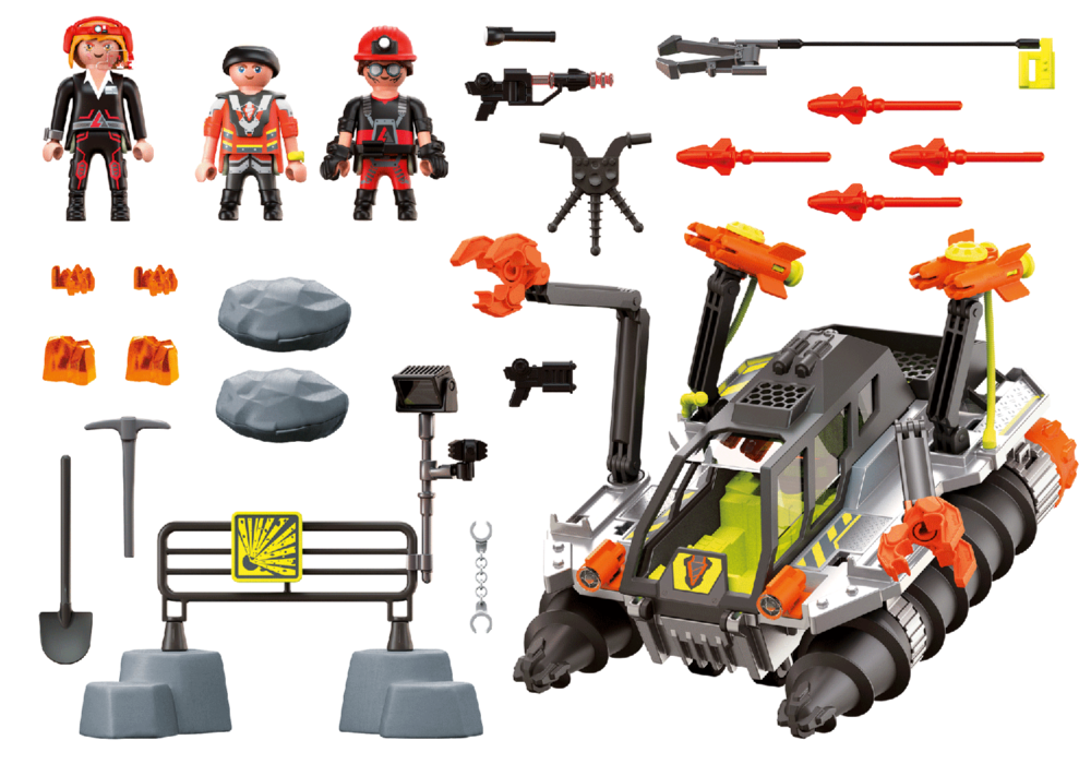 ด้วยยานเกราะอันทรงพลัง ลุดมิลลาและราล์ฟจาก Comet Corp. ทางของพวกเขาผ่านเหมืองไดโน หัวสว่านที่หมุนได้เมื่อเคลื่อนที่ เช่นเดียวกับปื*นให*ญ่ที่ใช้งานได้จริงสองกระบอกและแขนจับที่ยืดหยุ่นได้มอบความสนุกที่หลากหลายในการค้นหาหินพลังงานและแหล่งกำเนิดลาวา รวมฟิกเกอร์ 3 ตัว หินพลังงาน และอุปกรณ์เสริมอื่นๆ ขนาด: 21 x 15 x 9.5
