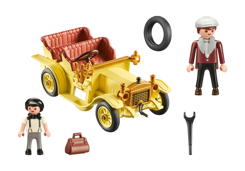 แฟน ๆ ของรถที่ชวนคิดถึงสามารถเข้ามา ขับรถออก และปล่อยให้ลมพัดผ่านหน้าคุณด้วยรถคลาสสิก PLAYMOBIL คันนี้ รถเปิดประทุนสไตล์วินเทจที่ได้รับการออกแบบด้วยความรักทำให้มั่นใจด้วยรายละเอียดที่แท้จริง เช่น เบาะบุนวมสีแดง หลอดไฟ บังโคลนโค้ง และฝากระโปรงเชิงมุมที่มีลักษณะเฉพาะขันหมุนสต๊าทเครื่อง รถรุ่นนี้ได้รับแรงบันดาลใจจากรถยนต์ เช่น Ford Model T ที่ผลิตในช่วงต้นศตวรรษที่ 20 ตัวเลขสี่ตัวสามารถนั่งในรถได้ ในชุดประกอบด้วยฟิกเกอร์ PLAYMOBIL สองตัว รถโบราณ กระเป๋าเดินทาง และอุปกรณ์พิเศษอื่นๆ สำหรับการเล่นผจญภัยตามจินตนาการในห้องเด็ก