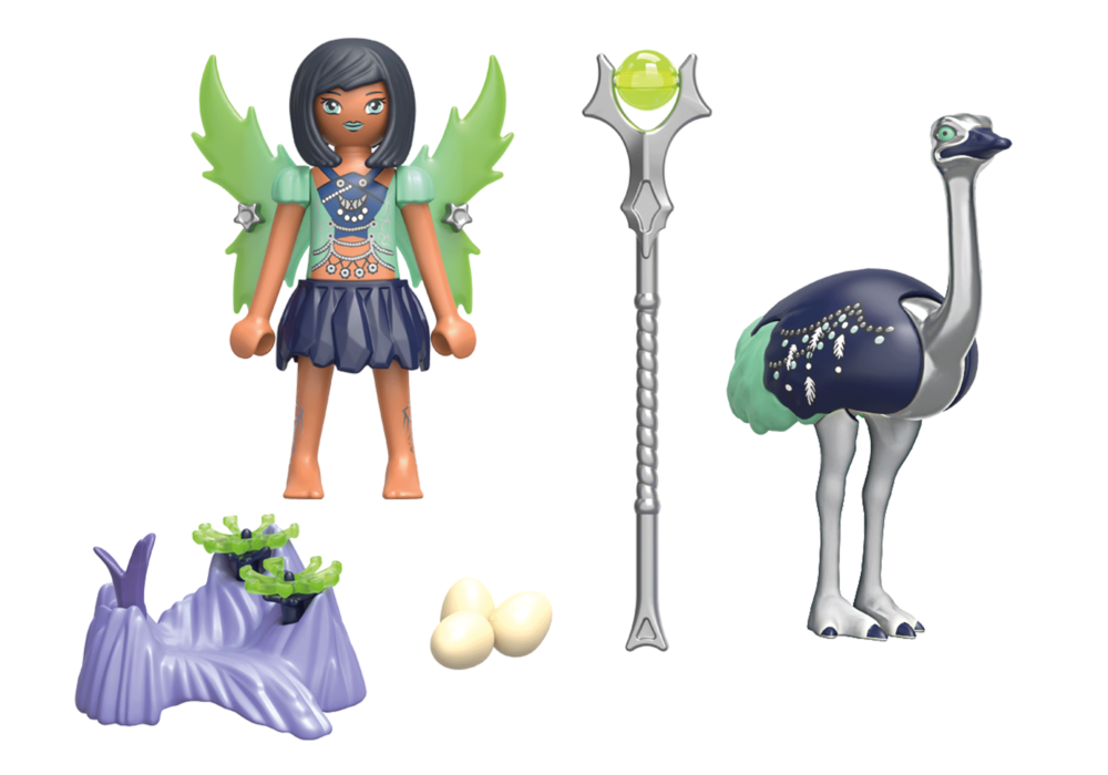 นางฟ้าพระจันทร์ดูแลดอกไม้วิญญาณของเธอด้วยความรัก เมื่อเผ่าพันธุ์นางฟ้าลึกลับกลุ่มใหม่ปรากฏขึ้นในอายูมะ โลกแห่งนางฟ้าก็อยู่ในสภาวะตื่นเต้นอีกครั้ง Moon Fairies สร้างความวุ่นวายให้กับดาวพยากรณ์ของพวกเขา แต่ในใจแล้วพวกเขาใจดีและน่ารัก นางฟ้าพระจันทร์คนนี้ดูแลฝูงสัตว์วิญญาณของเธออย่างดีเสมอ และรอให้ลูกหลานฟักออกจากไข่ ในชุดการเล่นประกอบด้วย Moon Fairy กับวิญญาณของนกกระจอกเทศ รังนกกระจอกเทศ ไม้กายสิทธิ์ ปีก และสิ่งพิเศษอื่นๆ ปีกของ Moon Fairy สามารถประดับด้วยดาวขนาดเล็กได้ เธอมีใบหน้าที่เปลี่ยนได้