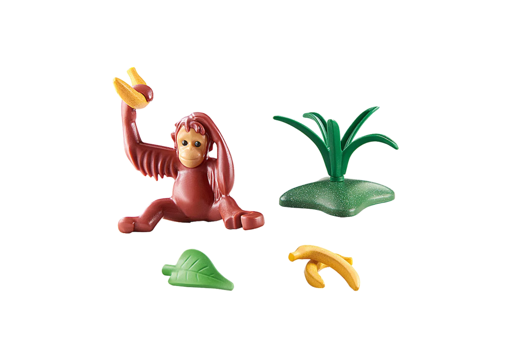 มองขึ้นไปด้านบนจะเห็นอุรังอุตังหนุ่มปีนต้นไม้ เนื่องจากพวกมันใช้ชีวิตส่วนใหญ่อยู่บนยอดไม้ ลิงอุรังอุตังเป็นหนึ่งในญาติสนิทของเรา แขนยาวของเขาซึ่งเอื้อมไปถึงข้อเท้าเมื่อยืนนั้นมีเสน่ห์เป็นพิเศษ อุรังอุตังมีความคิดสร้างสรรค์มาก และสามารถประดิษฐ์เครื่องมือและเครื่องมือต่างๆ ได้ ตัวอย่างเช่น พวกเขาใช้ไม้เป็นหอกในการจับปลา ลิงสร้างรังอยู่บนต้นไม้สูง พวกเขาได้รับการปกป้องอย่างดีจากผู้ล่า โลกแห่งการเล่น Wiltopia จาก PLAYMOBIL เชิญชวนให้เด็กๆ ได้ค้นพบภูมิภาคที่น่าตื่นเต้นในโลกของเราที่คู่ควรแก่การปกป้องและสัตว์ต่าง ๆ มากมาย รวมทั้งการเล่นและการเรียนรู้ในรูปแบบที่ไม่เหมือนใค