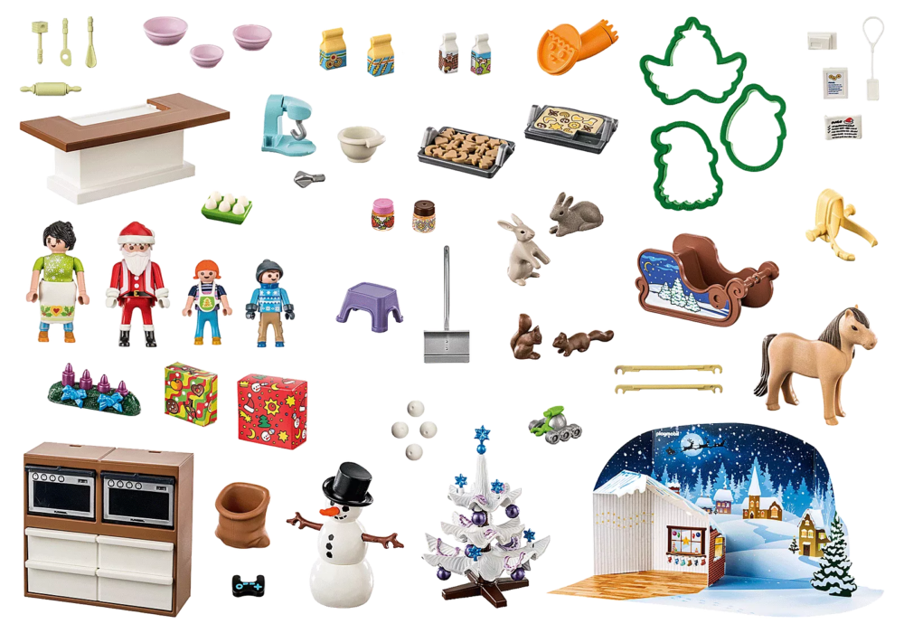 เปิดประตูสู่ความสนุกสุดยิ่งใหญ่! ปฏิทินการอบขนมคริสต์มาสของ PLAYMOBIL ช่วยให้มั่นใจได้ถึง 24 วันที่เต็มไปด้วยความคาดหมายและนำความหลากหลายที่สนุกสนานมาสู่ช่วงก่อนคริสต์มาส ในขณะที่แม่และลูกสาวกำลังอบคุกกี้แสนอร่อยในห้องครัวทันสมัยด้านใน ลูกชายกำลังสนุกสนานอยู่ข้างนอกท่ามกลางหิมะ เขาได้สร้างตุ๊กตาหิมะที่หล่อเหลาแล้ว และตอนนี้กำลังสร้างก้อนหิมะเพื่อต่อสู้กับก้อนหิมะ หลังจากเล่นหิมะอย่างสนุกสนาน เขาก็เข้าไปในรถม้าลากเลื่อนสองสามรอบต้นคริสต์มาสที่ตกแต่งอย่างรื่นเริงในสวน ชุดของเล่นประกอบด้วยปฏิทินการถือกำเนิดที่มี 24 เซอร์ไพรส์และที่ตัดคุกกี้ของจริงเพื่อความสนุกสนานในการอบขนมที่บ้าน นอกจากฟิกเกอร์ PLAYMOBIL ทั้งสามแล้ว ยังมีซานตาคลอสพร้อมกระสอบและของขวัญ รถเลื่อนม้า