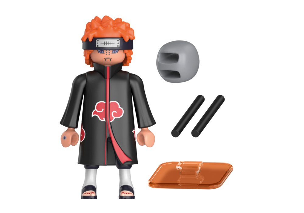 ความร่วมมือที่ประสบความสำเร็จระหว่าง PLAYMOBIL และ NARUTO กำลังเข้าสู่รอบที่สอง แฟนอนิเมะทุกคนสามารถตั้งตารอตัวละครใหม่จากจักรวาล NARUTO ที่น่าตื่นเต้น ฟิกเกอร์ที่สร้างสรรค์สร้างแรงบันดาลใจด้วยรายละเอียดมากมายและเครื่องประดับสุดเจ๋งจากซีรีส์ที่ประสบความสำเร็จอันโด่งดัง และเป็นที่ดึงดูดสายตาในทุกงานแสดงของแฟนๆ ชุด PLAYMOBIL ประกอบด้วยตัวละคร NARUTO SHIPPUDEN Pain ที่มีผมสีแดง ที่คาดผม แท่งจักระ และหิน เขาแต่งกายด้วยชุด Akatsuki มาตรฐาน ซึ่งเป็นเสื้อคลุมสีดำที่มีเมฆสีแดง