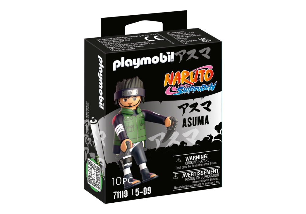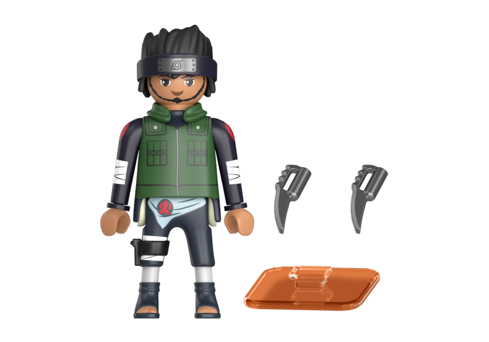 ชุด PLAYMOBIL ประกอบด้วยตัวละคร Asuma Sarutobi จาก NARUTO SHIPPUDEN ในชุดต่อสู้พร้อมเสื้อกั๊กสีเขียวและแถบคาดศีรษะที่เข้าชุดกัน
