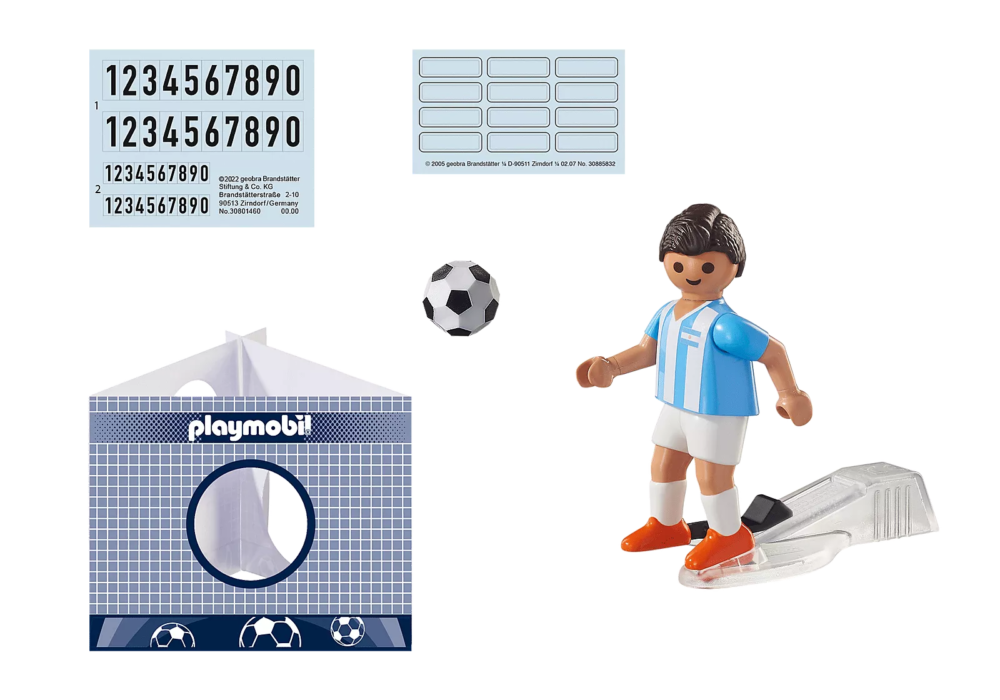 ดาราฟุตบอล PLAYMOBIL พร้อมแล้วสำหรับทัวร์นาเมนต์ใหญ่ นักฟุตบอลจากอาร์เจนตินาทุ่มเททุกอย่างเพื่อทีมของเขา ทีมไหนจะชนะ? ด้วยฟังก์ชันการเตะด้วยมือเดียวที่ใช้งานได้จริง ทำให้สามารถวางลูกบอลทั้งแบนและสูงในลักษณะที่เป็นเป้าหมายได้ รวมทั้งผนังประตูกระดาษแข็ง มีความสนุกสนานฟุตบอลมากยิ่งขึ้นเมื่อรวมกับสนามฟุตบอล (71120) ด้วยป้ายเปล่าที่ปิดอยู่ คุณสามารถติดป้ายแต่ละรูปด้วยชื่อและหมายเลขประจำเครื่องของเครื่องเล่นที่คุณชื่นชอบ