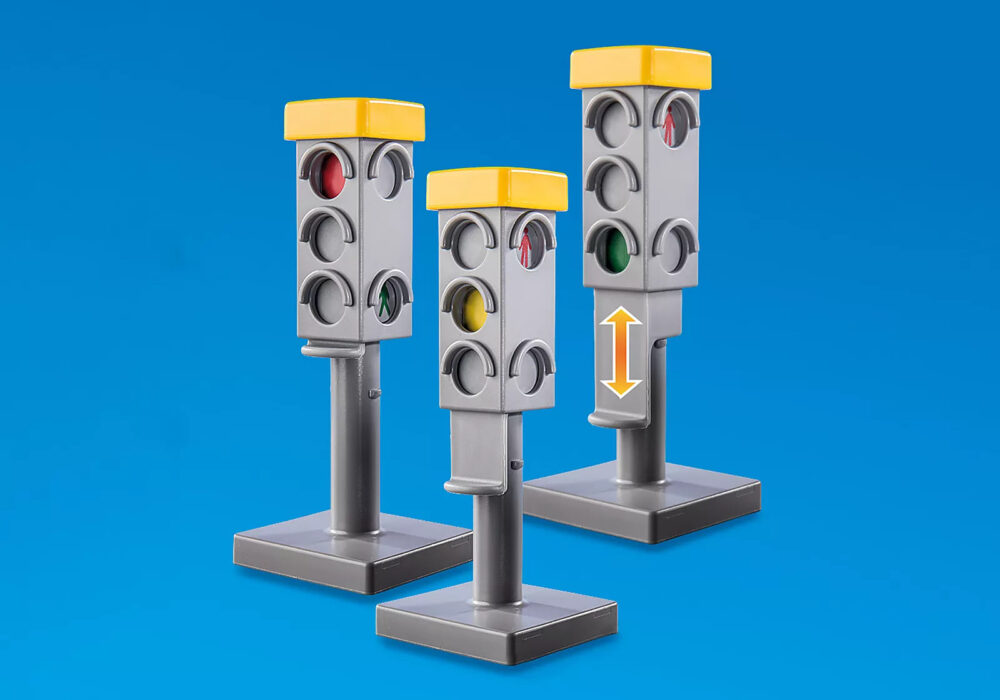 ชุดของเล่นประกอบด้วย : PLAYMOBIL 1.2.3 สามตัว, รถจักรยานยนต์ 1 คัน, รถหมอ, สัญญาณไฟจราจร สามเหลี่ยมเตือน และอื่นๆ อีกมากมาย สวิตช์ไฟจราจรสามารถตั้งค่าได้สามตำแหน่งโดยใช้แถบเลื่อนที่ด้านข้าง