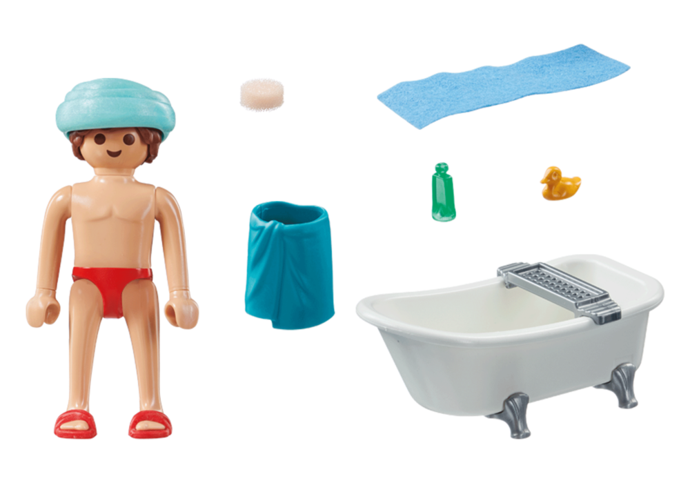 อะไรจะดีไปกว่าการผ่อนคลายหลังเลิกงานไปกว่าการแช่ตัวในอ่างอาบน้ำนานๆ ปล่อยใจให้ล่องลอยไปกับการเล่นน้ำในโอเอซิสแห่งความสุขที่บ้าน หลังอาบน้ำ เพียงสวมรองเท้าแตะแล้วพันผ้าขนหนูรอบศีรษะเป็นผ้าโพกศีรษะ ด้วยชุด PLAYMOBIL Special Plus ที่น่ารัก คุณสามารถมอบความสนุกสนานให้กับเด็กอายุตั้งแต่ 4 ขวบขึ้นไป ฟิกเกอร์ของเล่นแสนร่าเริงสามารถเล่นเป็นรายบุคคลหรือรวมกับโลกธีมอื่นๆ ของ PLAYMOBIL