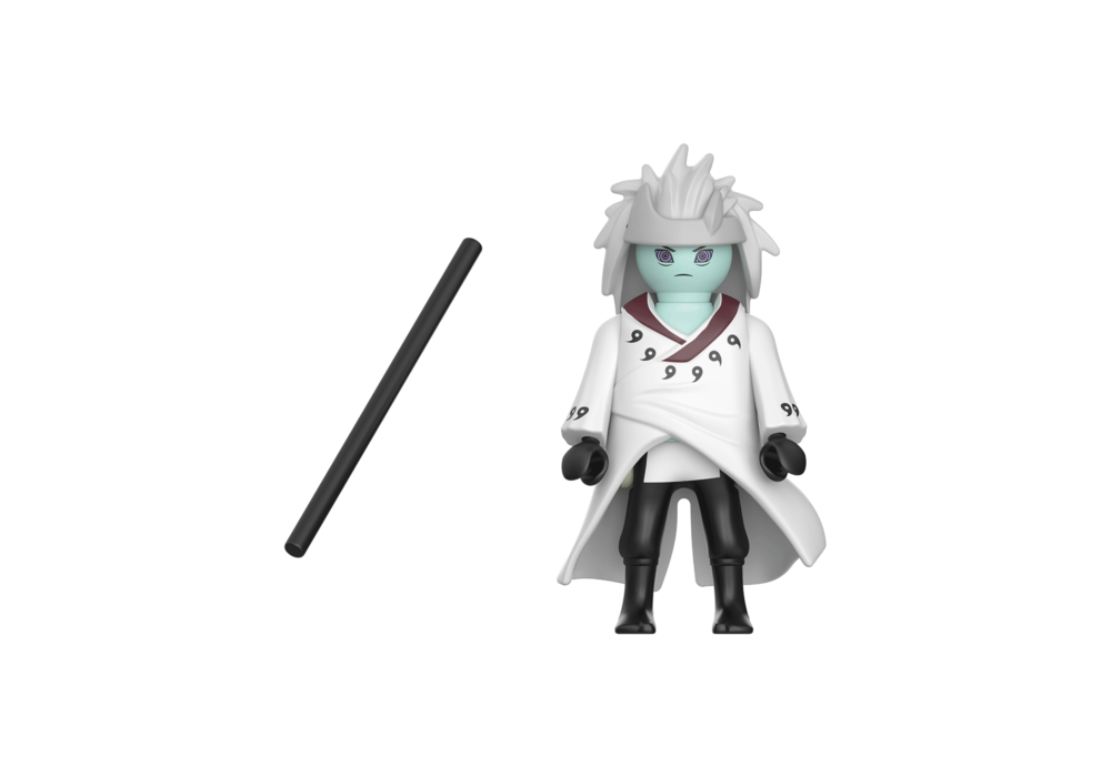 ในชุด PLAYMOBIL ประกอบด้วยมาดาระตัวละคร NARUTO SHIPPUDEN ในโหมดเซียนหกวิถี พร้อมเสื้อคลุมและไม้เท้า แผ่นรองศีรษะแบบใหม่สามารถถอดออกได้ เพื่อให้แน่ใจว่ามีขาตั้งที่ปลอดภัย สามารถวางฟิกเกอร์ไว้บนแผ่นฐานได้