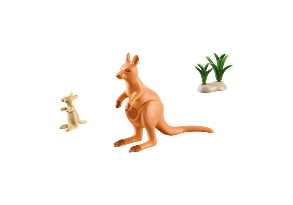 ค้นพบพืชและสัตว์ที่น่าสนใจของโลกของเราด้วย PLAYMOBIL WILTOPIA แล้วเจิงโจ้น่ารัก ๆ ที่จะเพิ่มเข้าไปในคอลเลกชันสัตว์ของคุณ แม่จิงโจ้อุ้มลูกใส่ในกระเป๋าหน้าท้องและมองหาอาหารสำหรับตัวมันเองและลูกที่หิวโหย เเม่จิงโจ้ขนาดใหญ่สามารถขยับร่างกายส่วนบนขึ้นและลงได้ เเละหากเอียงร่างกายส่วนบนไปด้านหลัง สามารถใส่ลูกจิงโจ้ไว้ในกระเป๋าหน้าท้องได้