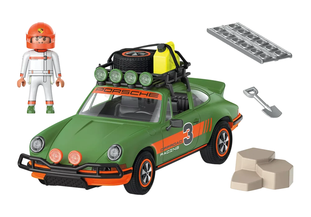 เหมาะสำหรับการขับขี่แบบผจญภัย PLAYMOBIL Porsche 911 Carrera RS 2.7 Offroad ใหม่ล่าสุดเหมาะอย่างยิ่งสำหรับการเดินทางที่ท้าทายผ่านภูมิประเทศที่ขรุขระ ด้วยระยะห่างจากพื้นดินที่เพิ่มขึ้น แถบป้องกันด้านหน้า และแร็คหลังคา ชุดนี้จึงมอบทุกสิ่งที่ผู้ชื่นชอบรถทั้งเด็กและผู้ใหญ่จะชื่นชอบ หลังคาแบบถอดได้ พื้นที่สำหรับสี่คน และอุปกรณ์เสริมเพิ่มเติม เช่น ยางอะไหล่และกระป๋องน้ำมัน ทำให้ทุกการเดินทางเป็นการผจญภัย