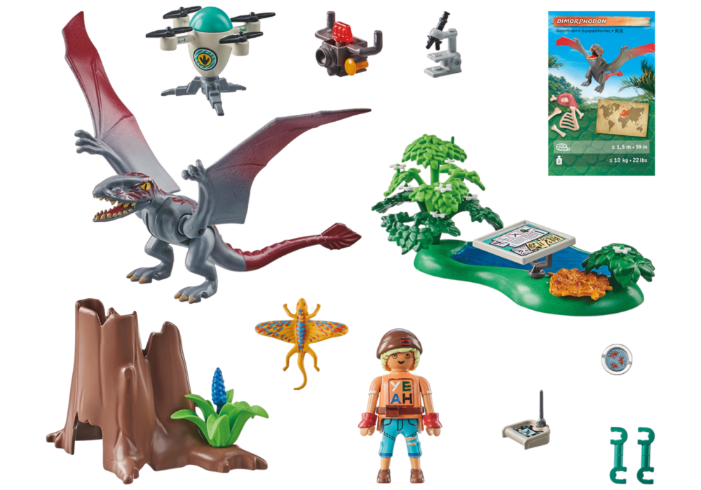 •ชุดไดโนเสาร์ PLAYMOBIL สุดเจ๋งที่มีฟิกเกอร์ PLAYMOBIL ไดมอร์โฟดอน กิ้งก่าบินได้ โดรนพร้อมกล้อง กล้องจุลทรรศน์ บ่อน้ำที่มีต้นไม้ และอื่นๆ อีกมากมาย