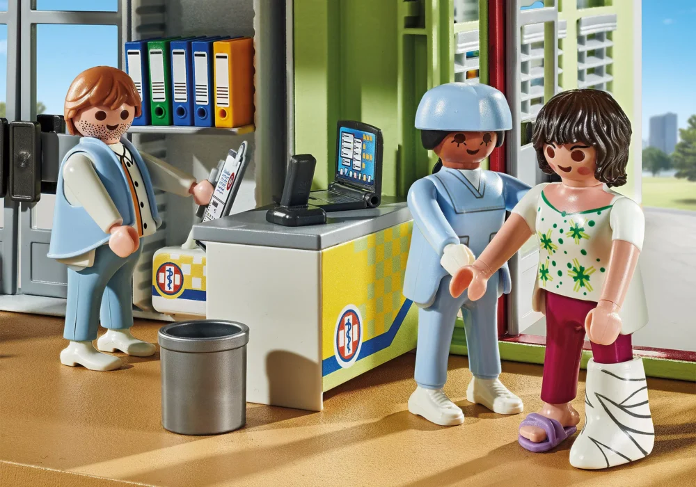 โรงพยาบาล PLAYMOBIL สร้างความประทับใจด้วยอุปกรณ์ที่ครบครัน ห้องผ่าตัดมีอุปกรณ์ทางการแพทย์ที่ทันสมัยให้เด็กๆได้สัมผัสประสบการณ์การเล่นเกมที่สมจริง ลิฟต์ช่วยให้แน่ใจว่าทุกพื้นที่ของโรงพยาบาลปราศจากสิ่งกีดขวาง ห้องพักในโรงพยาบาลเป็นสถานที่พักผ่อนที่สะดวกสบายสำหรับผู้ป่วยในการฟื้นตัว ในขณะที่อุปกรณ์เสริมมากมาย เช่น ผ้าพันแผลและเครื่องมือทางการแพทย์ จะช่วยเติมเต็มประสบการณ์การเล่นเกม