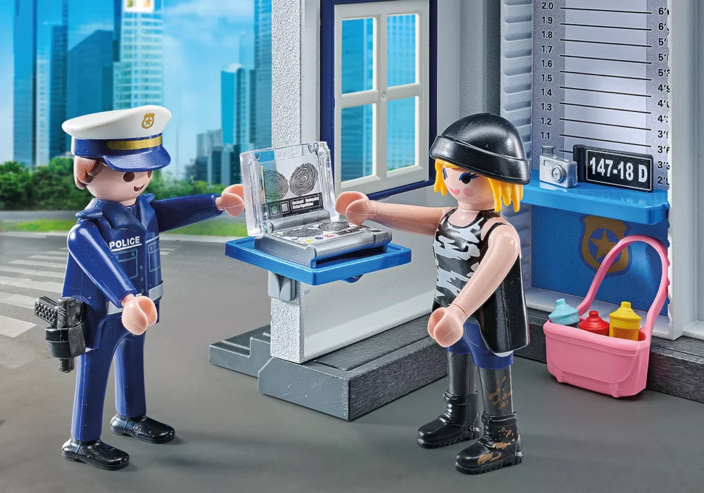**”ใครทำกันนะ? ช่วยตำรวจหาคำตอบว่าใครคือผู้ที่สนุกกับกระป๋องสเปรย์นอกบ้าน, ถ่ายภาพของผู้ต้องสงสัย และเปรียบเทียบลายนิ้วมือของเธอกับข้อมูลในแล็ปท็อป. สามารถเชื่อมต่อกับสถานีตำรวจและเป็นการเสริมที่ยอดเยี่ยมสำหรับธีมตำรวจ PLAYMOBIL.**