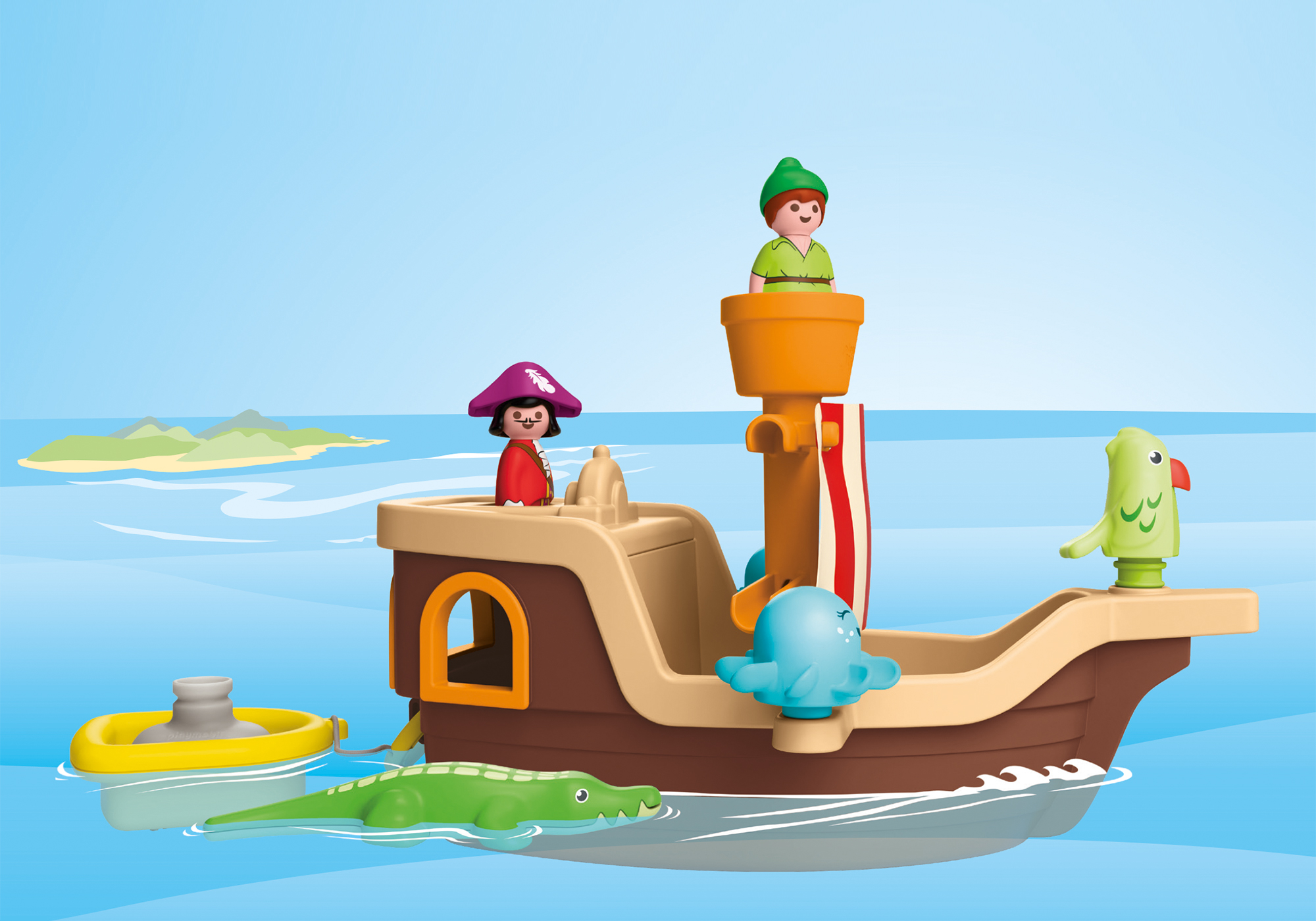 ชุด **JUNIOR & Disney: Peter Pan’s Splashing Pirate Ship** เปลี่ยนเวลาน้ำให้สนุกสนาน เหมาะสำหรับเด็กอายุ 1-4 ปี มือเล็กจับได้สะดวก ปลอดภัย ปราศจาก BPA และชิ้นส่วนเล็ก