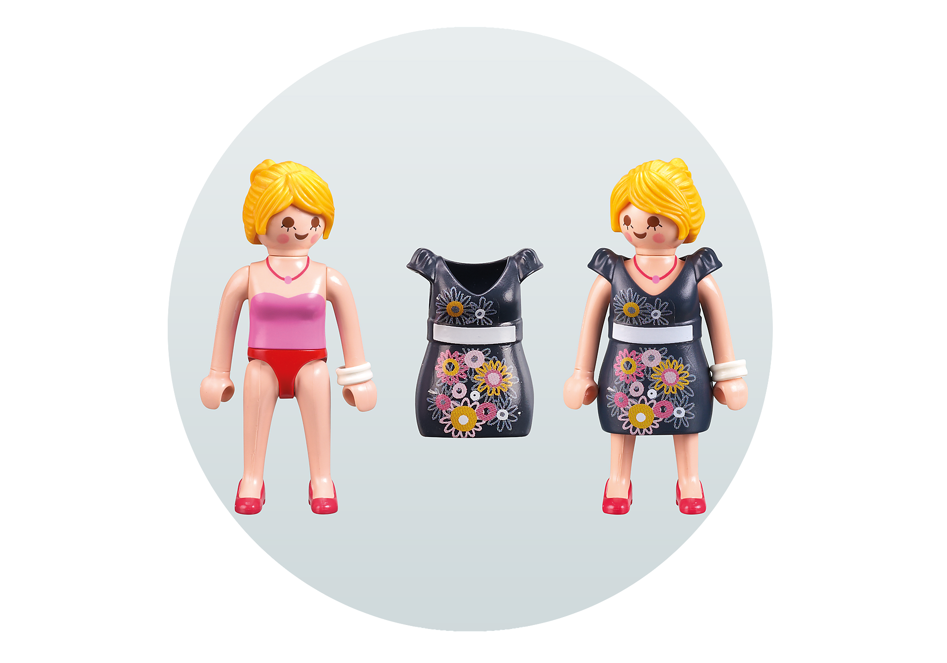 ฟิกเกอร์ผู้หญิง2 ชุดเปลี่ยนได้สองชุด กระเป๋าช้อปปิ้ง ลูกสุนัขเงินและอุปกรณ์เสริมอื่น ๆ