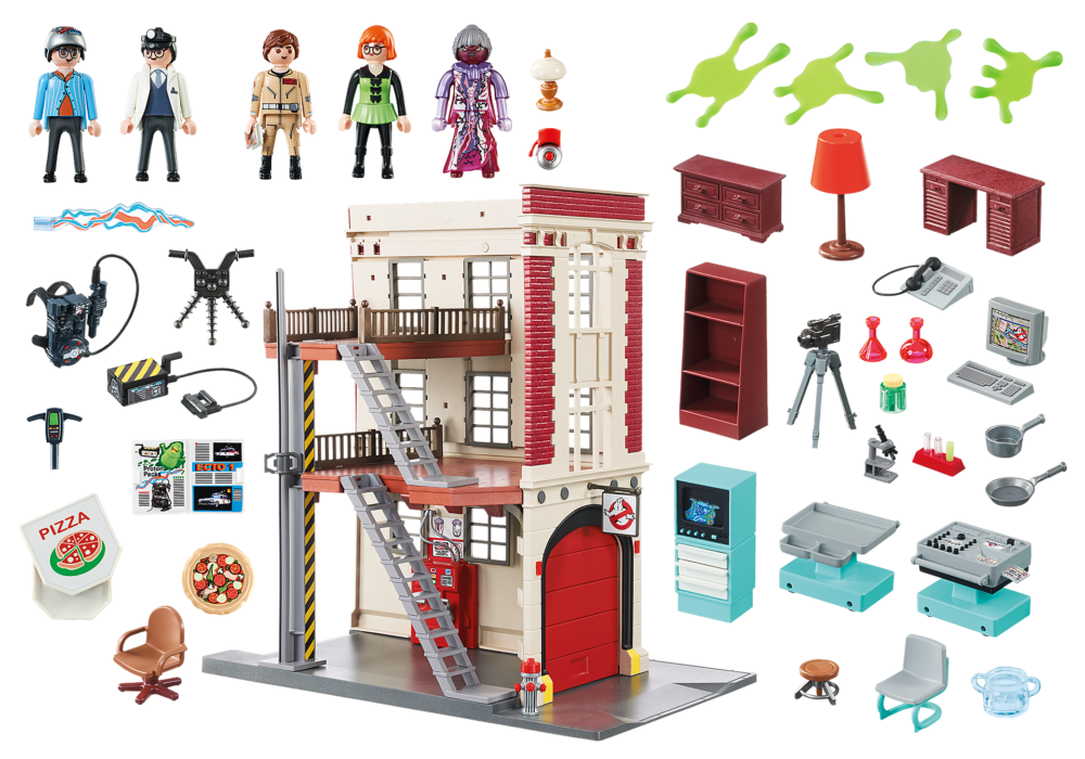 มีอะไรแปลก ๆ ในละแวกของคุณเหรอ? โทรหา Ghostbusters ™ Firehouse! ที่นี่คุณจะได้พบกับ Spengler ผสมส่วนผสมการต่อสู้ผีในปัจจุบันในห้องทดลองสแตนซ์เฝ้าดูอย่างใกล้ชิดกับ Library Ghost และ Janine รับฟังเรื่องราวที่น่ากลัวทั้งหมดของคุณ สามารถเล่นกับ Ecto-1 (9220 – แยกจำหน่าย) สามารถจอดข้างในได้