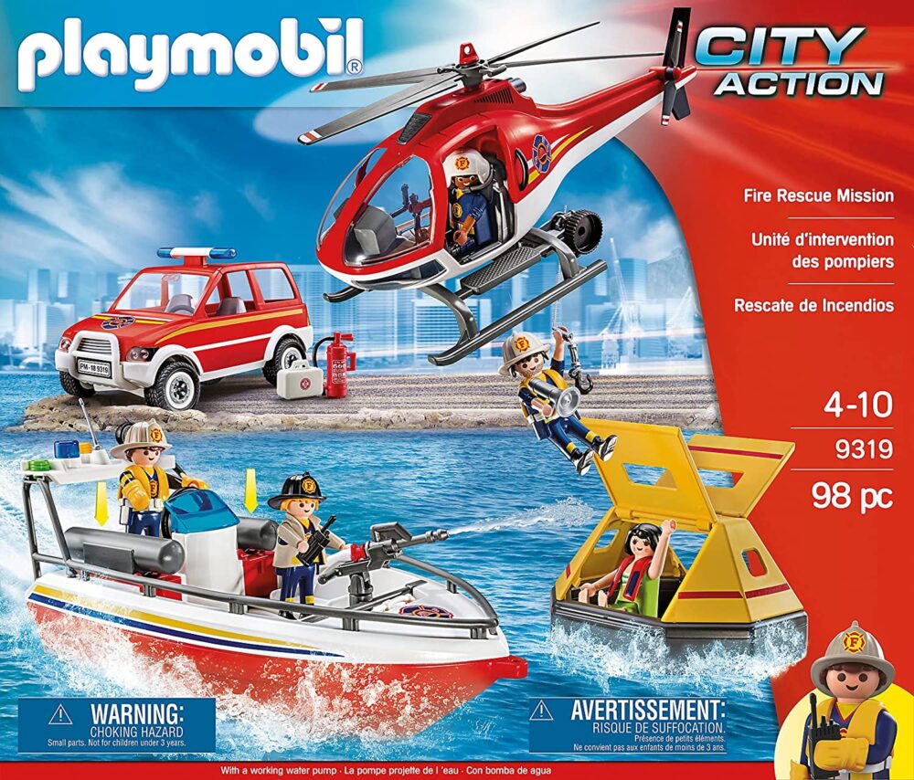 สร้างสรรภารกิจกู้ภัยอัคคีภัยที่น่าตื่นเต้นสุด ๆ และสร้างฉากเจ๋ง ๆ ขึ้นมาใหม่ด้วย Playmobil playset (9319) ซึ่งประกอบด้วยเฮลิคอปเตอร์กู้ภัย เรือเร็ว และรถยนต์