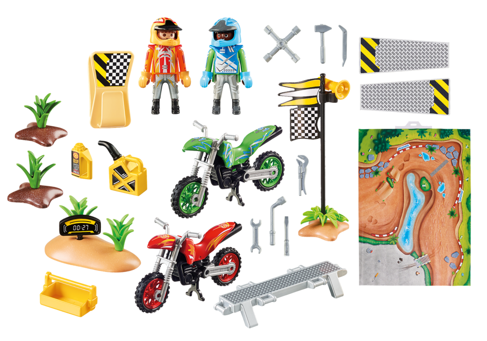 Motocross Play Map มีมอเตอร์ไซค์วิบากสองเครื่องและอุปกรณ์เสริมมากมาย