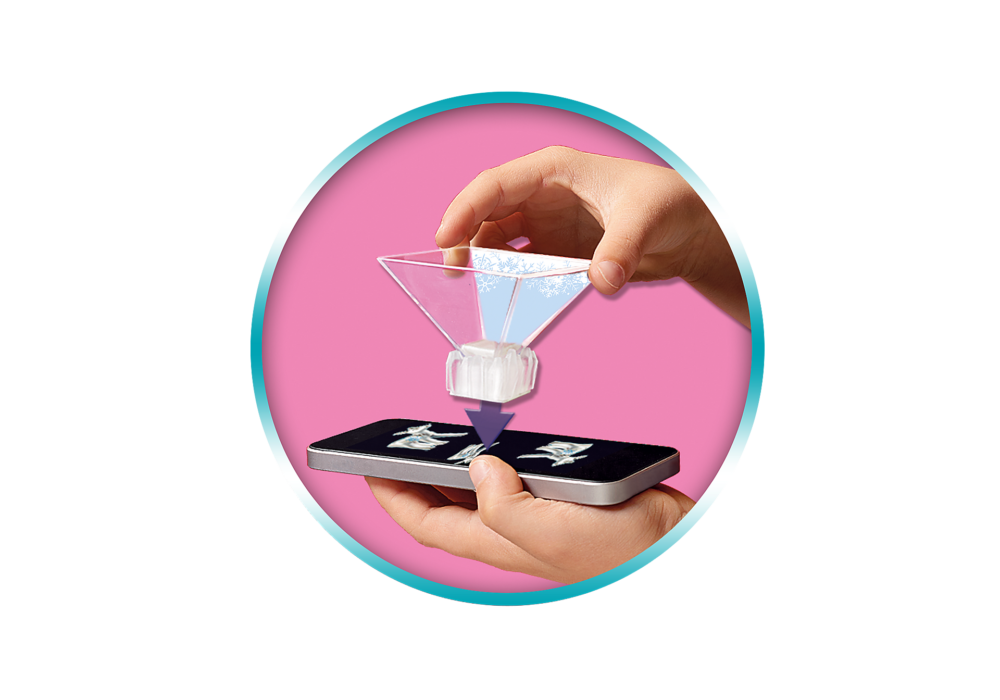 เจ้าหญิงประกายดาว ด้วยกระต่ายและเอฟเฟกต์โฮโลแกรมเจ๋ง ๆ กรวยที่ชัดเจนทำหน้าที่เป็นโปรเจ็กเตอร์เมื่อจับคู่กับสมาร์ทโฟนหรือแท็บเล็ต เปิดใช้งานแอปเพื่อดูสิ่งมีชีวิตที่น่ารักภายในกรวย!