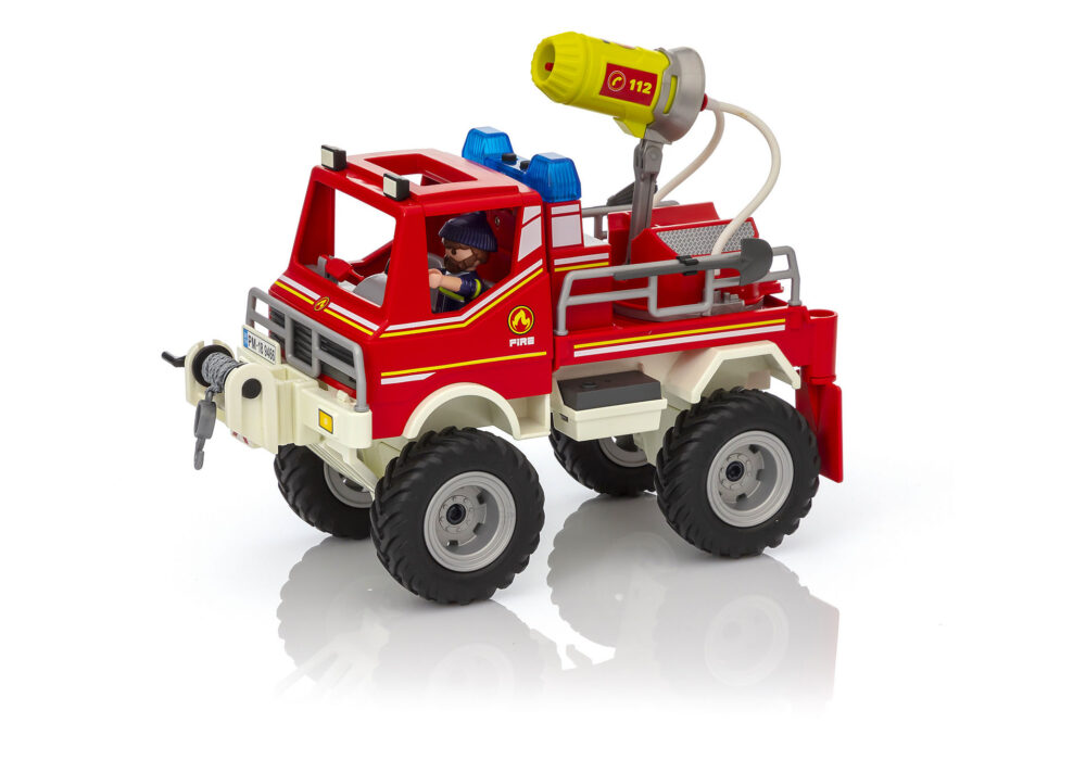ไม่ว่าจะเป็นพื้นที่ไหนๆก็ไม่ยากเกินไปสำหรับรถบรรทุกดับเพลิง ยานพาหนะดับเพลิงที่ไปได้ทุกพื้นที่นี้ติดตั้งไฟกระพริบและเสียง (จำเป็นต้องใช้แบตเตอรี่ AAA 3 ก้อน) และพร้อมที่จะรับมือกับไฟป่าหรือการดับเพลิงอื่น ๆ ที่ไม่ใช่แบบดั้งเดิม ปืนใหญ่น้ำหมุนได้ถูกออกแบบมาเพื่อฉีดน้ำในระยะไกลและเครื่องดึงกู้ภัยสามารถช่วยให้ดึงรถใด ๆ ออกจากสถานการณ์ที่มีรถติดตม รวมชุดนี้กับนักผจญเพลิงกับปั๊มน้ำ (# 9468 – แยกจำหน่าย) เพื่อความสนุกที่มากยิ่งขึ้น