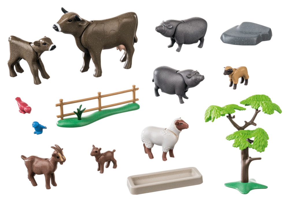 สัตว์ในฟาร์มมาเสริม นอกจากหมูท้องที่พัฒนาขึ้นใหม่แล้ว ในชุดยังประกอบด้วยวัวกับลูกวัว แกะกับลูกแกะ และแพะกับลูก