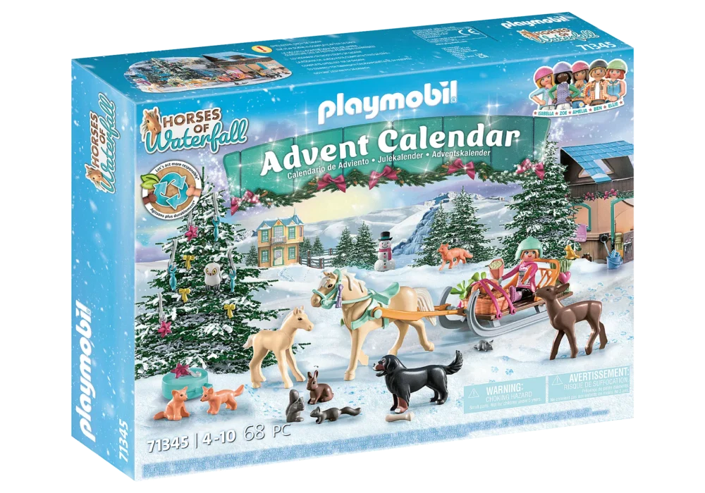 ปฏิทินจุติ PLAYMOBIL ที่ออกแบบด้วยความรักสำหรับโลกแห่งธีม Horses of Waterfall พร้อมด้วยอิซาเบลลา บัตเตอร์คัพม้า ครีมลูกม้า และลูซี่สุนัข สัตว์ป่าน่ารัก รถลากเลื่อนที่ลากด้วยม้า บังเหียน อาหาร และชุดดูแลม้า มีพื้นที่ในเลื่อนสำหรับวางฟิกเกอร์และมีชั้นวางสำหรับตะกร้า เครื่องประดับต้นไม้สามารถเก็บไว้ในกล่องของขวัญได้