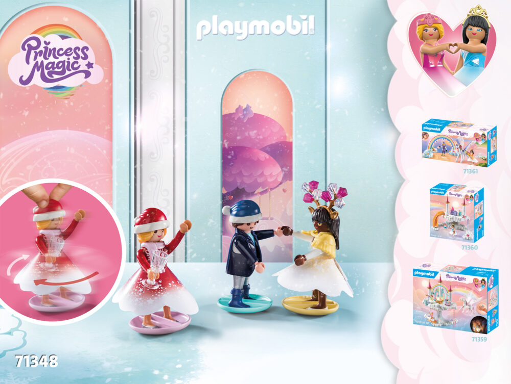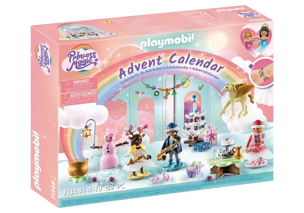 ด้วยปฏิทินจุติของ PLAYMOBIL “คริสต์มาสใต้สายรุ้ง” ฤดูจุติจะมหัศจรรย์มาก! ใน 24 วัน ฉากลูกบอลมหัศจรรย์ได้ถูกสร้างขึ้น โดยเจ้าหญิงทั้งสองเฉลิมฉลองงานปาร์ตี้สุดหรูร่วมกับเจ้าชาย ลูกเพกาซัสสีทอง และสัตว์น่ารักอื่นๆ ไม่ควรพลาดต้นคริสต์มาสที่ตกแต่งด้วยของขวัญและโต๊ะพร้อมอาหารอร่อย ขณะที่เจ้าชายร้องเพลงคริสต์มาสบนแซ็กโซโฟน เจ้าหญิงสายรุ้งก็เต้นตามจังหวะบนยอดของพวกเขา สำหรับผู้ชื่นชอบเครื่องประดับ เรามีสร้อยข้อมือสวยๆ พร้อมเครื่องรางคริสต์มาสซึ่งสามารถใช้เป็นพวงมาลัยได้ด้วย ของขวัญจุติที่สมบูรณ์แบบสำหรับเด็กอายุ 4 ปีขึ้นไปที่มีจินตนาการ