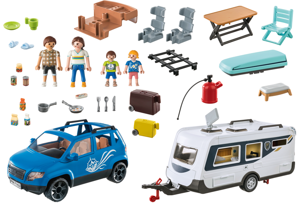 สนุกสนานไปกับการตั้งแคมป์ในคาราวานด้วยรถยนต์จาก PLAYMOBIL! ชุดของเล่นที่มีรายละเอียดครบถ้วนนี้มีทุกสิ่งที่เด็กๆ นักผจญภัยจำเป็นต้องใช้ในการเดินทางท่องเที่ยวสู่ธรรมชาติ: คาราวานกว้างขวางสำหรับทั้งครอบครัว รถยนต์ และอุปกรณ์ตั้งแคมป์มากมาย เชื่อมต่อคาราวานเข้ากับรถ ขึ้นรถแล้วขับออกไปเพื่อค้นหาจุดที่ดีที่สุดสำหรับการผจญภัยแคมป์ปิ้งของคุณ ไม่ว่าจะเป็นการเดินทางช่วงสุดสัปดาห์หรือการเดินทางไกล คาราวานนี้เหมาะสำหรับทุกการเดินทาง ด้วยชุดตั้งแคมป์ PLAYMOBIL ต่างๆ (แยกจำหน่าย) เด็กๆ ได้รับแรงบันดาลใจในการบอกเล่าเรื่องราวของตนเอง